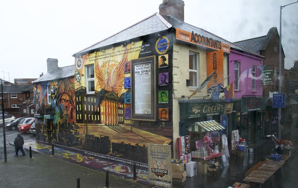 L’œuvre est située à Belfast, capitale de l’Irlande du Nord, dans le quartier de Falls Road.