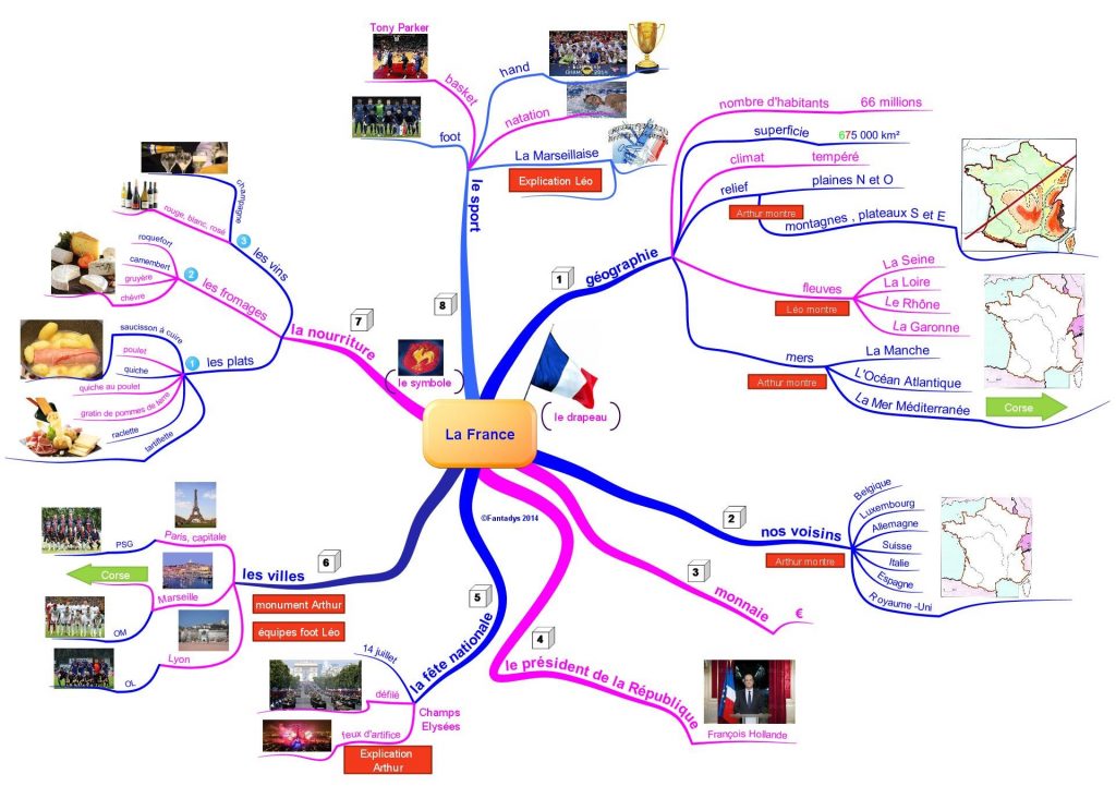 L’information est organisée différemment sur une carte mentale, par rapport à un cours classique :