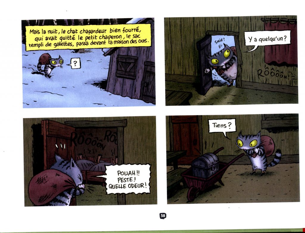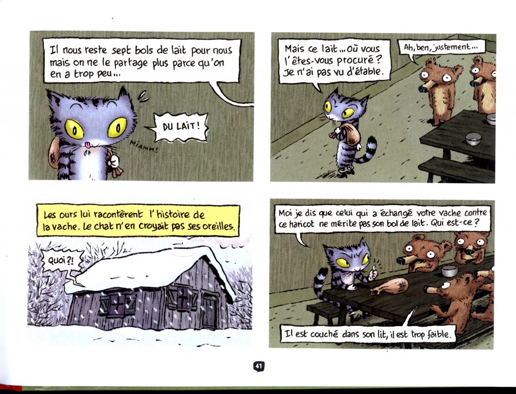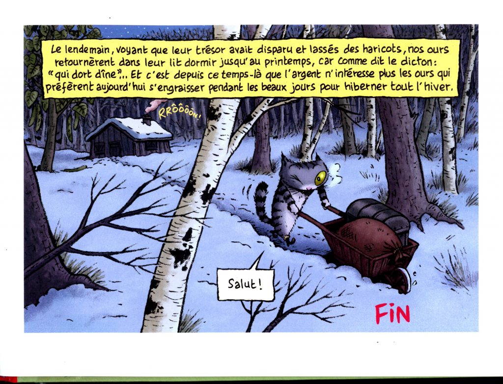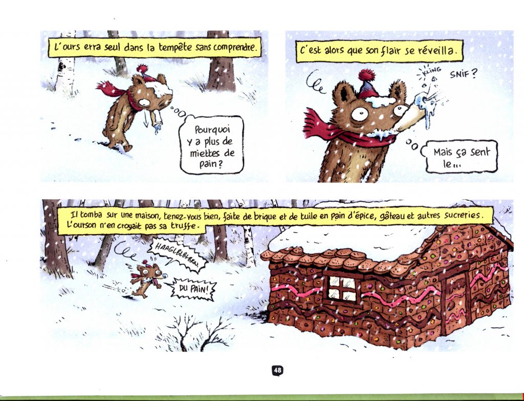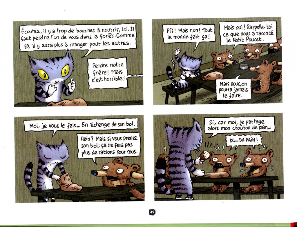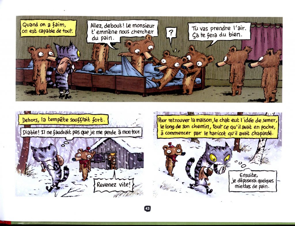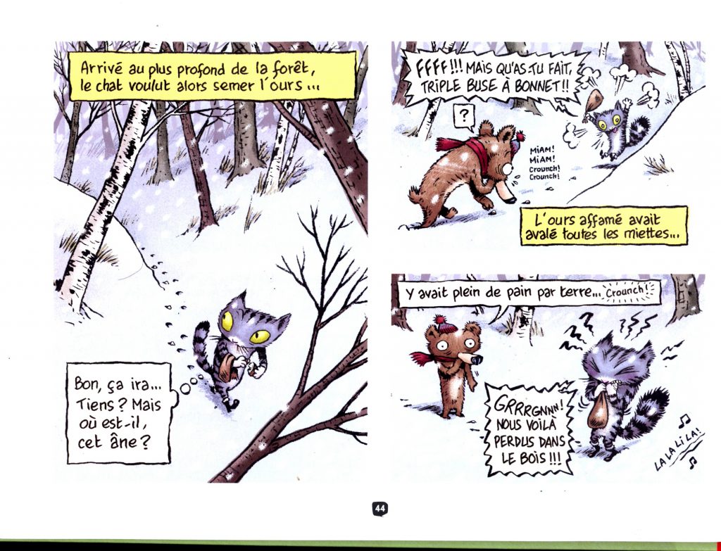 - Les miettes de pain abandonnées par le chat et mangées par l’ours -> Le petit Poucet